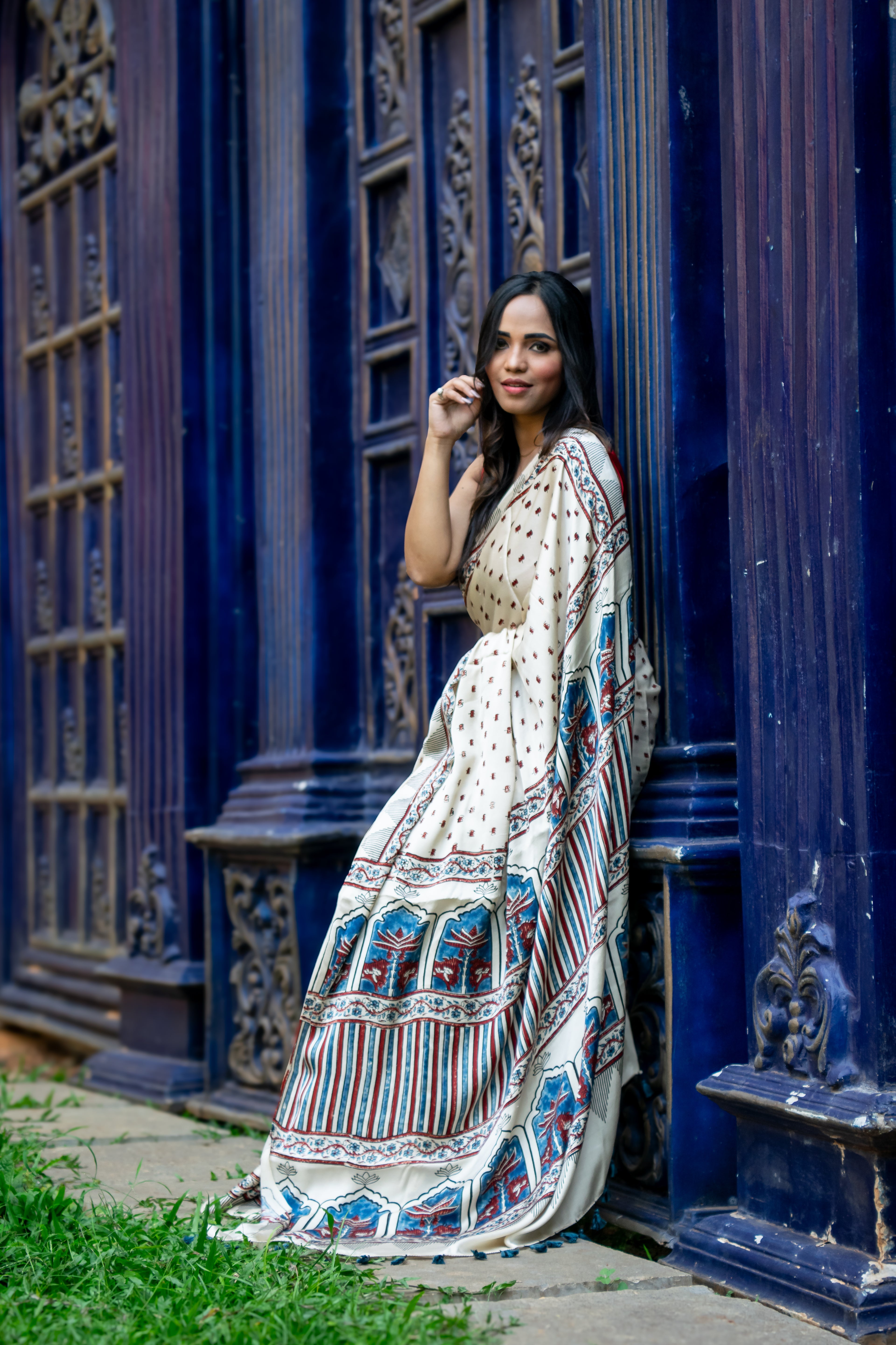 Handcrafted Original Ajrakh Saree – Natural Dye, Pure Cotton/Silk
